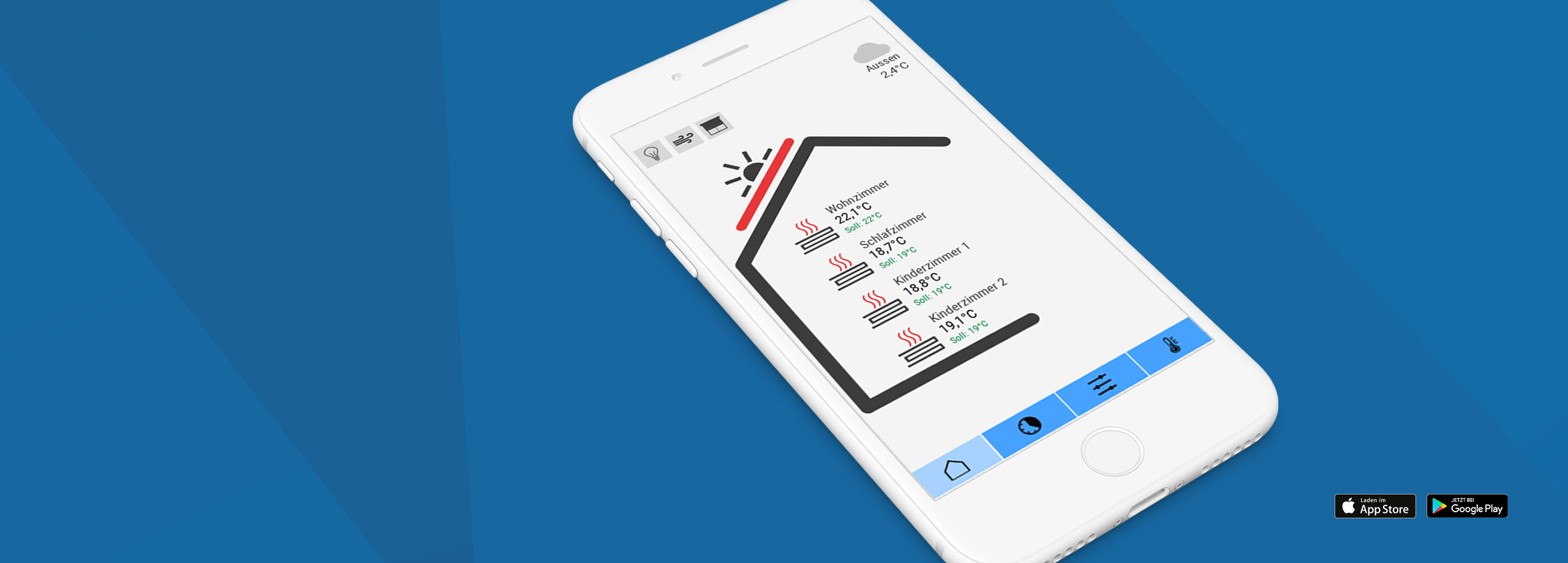 Our x2 devices grant you full control over the intelligently automated and centralized regulation of all components of your housing technology system. Anything from heating and cooling to lighting and blind control, even air conditioning is possible. Access via internet (using your browser, iOS or Android app) is made possible by the hardware-interface "C.M.I.". Detailed statistics, individualized schematics and much more is made possible.