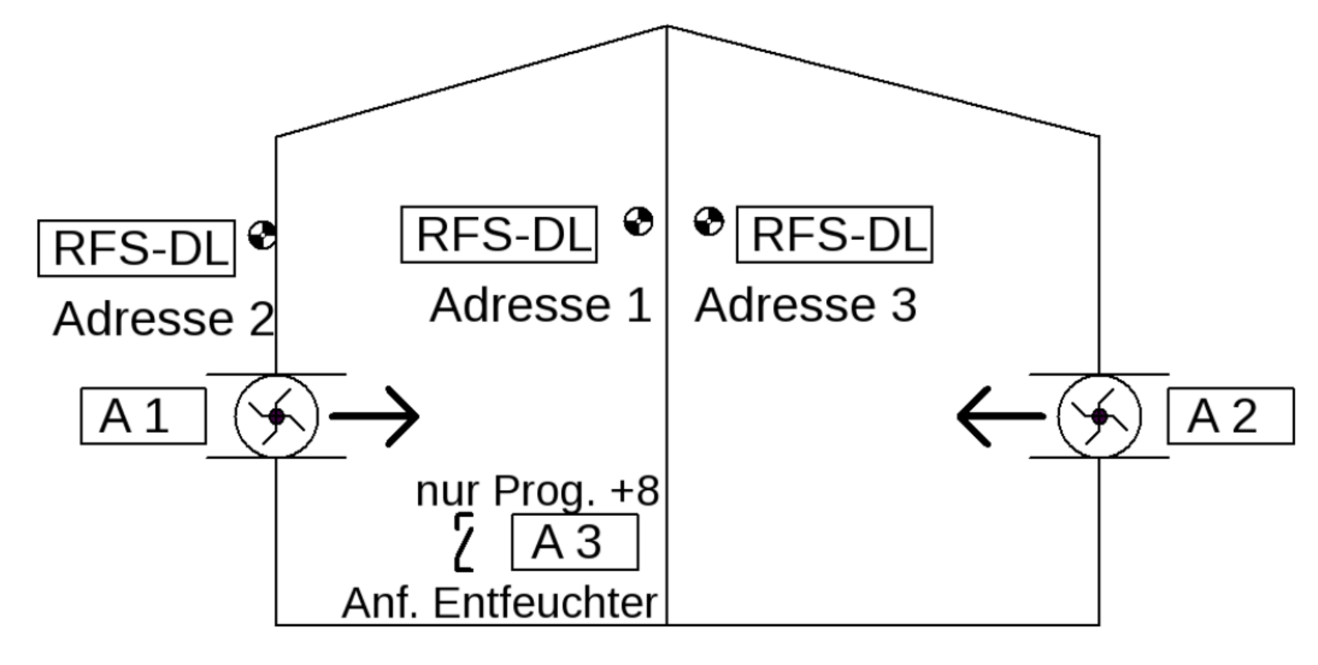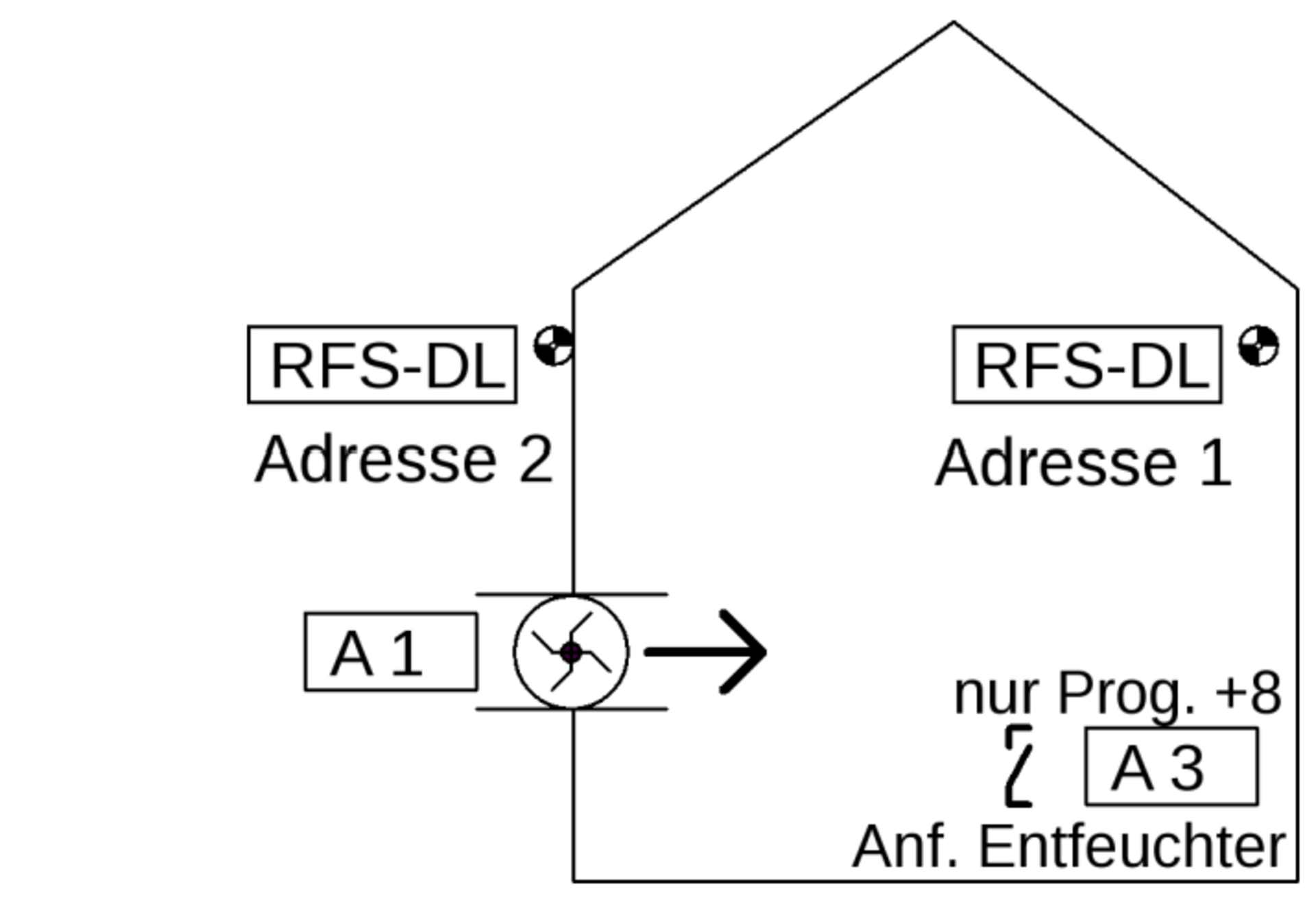 Mit Programm 693 (sieht Abb. 2) ist die Raumtrocknung auch für zwei Räume, unabhängig voneinander, möglich. Hierfür wird ein dritter RFS-DL benötigt.