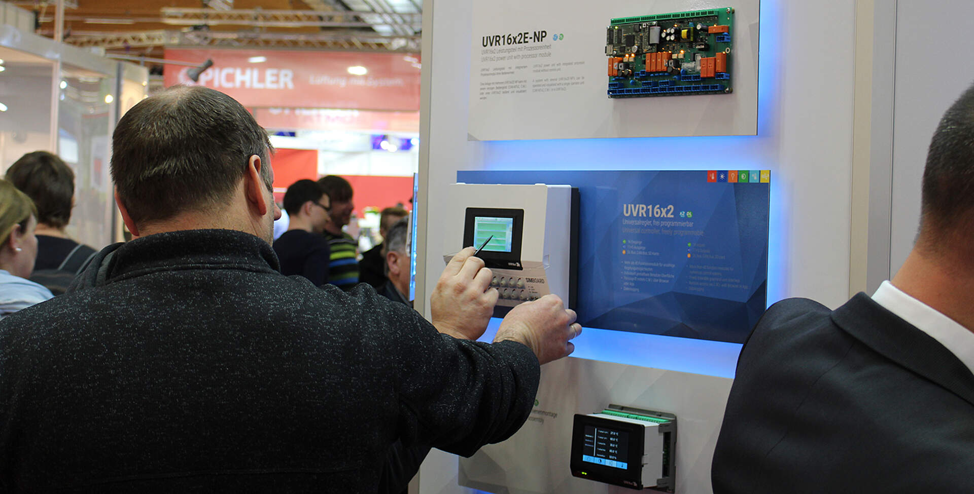 In diesem Jahr stellten wir mit der UVR65 eine neue Universalregelung vor. Sie weist mit über 800 einstellbaren Programmen große Flexibilität auf. Zusätzlich hat sie eine CAN-Bus Schnittstelle und ist über das C.M.I. auch aus der Ferne wart- und bedienbar, was mit ein Grund für die positive Resonanz war. Die UVR65 wird voraussichtlich im zweiten Quartal 2018 lieferbar sein.