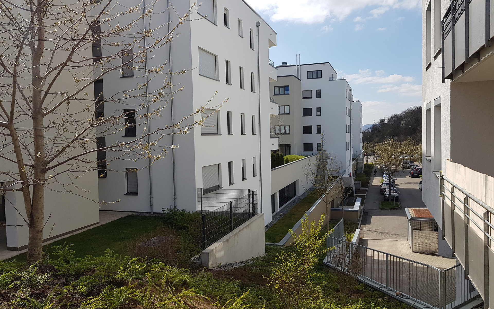 Für das Neubauprojekt Cannstatter Pforte wurde mit dem Bauträger ein langjähriger Wärmelieferungsvertag abgeschlossen. Die installierte Anlagentechnik bestehend aus einem mit Erdgas befeuerten BHKW-Modul mit 50 kW elektrischer Leistung und einer Spitzenkesselanlage mit einer Kesselleistung von 2 x 200 kW. Zum Ausgleich von Leistungsschwankungen auf Seiten der Wärmeabnehmer wurden Pufferspeicher mit einem Heizwasserinhalt von 6.000 Liter eingebaut. Durch den Einsatz einer geeignet dimensionierten KWK-Anlage wird der geforderte Primärenergiefaktor für den Energieeinsatz deutlich unterschritten.
