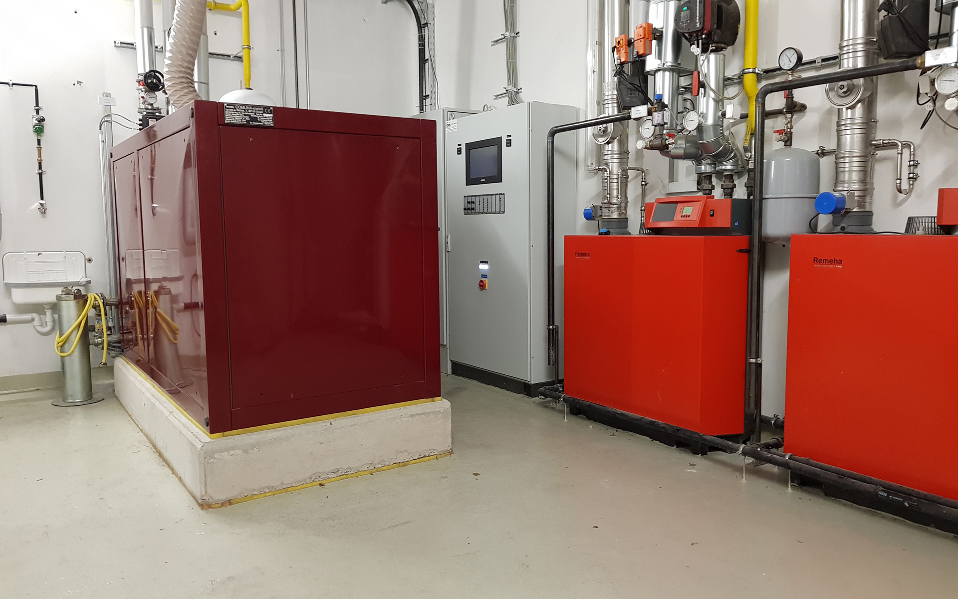 Die Betriebserfahrungen des ersten gesamten Betriebsjahres 2018 ergeben ein sehr positives Ergebnis. Bei ca. 5.000 Betriebsstunden wurden vom BHKW ca. 93 % des Wärmeverbrauchs abgedeckt. Die in Kraft-Wärme-Kopplung erzeugte Strommenge summiert sich auf ca. 250.000 kWh.