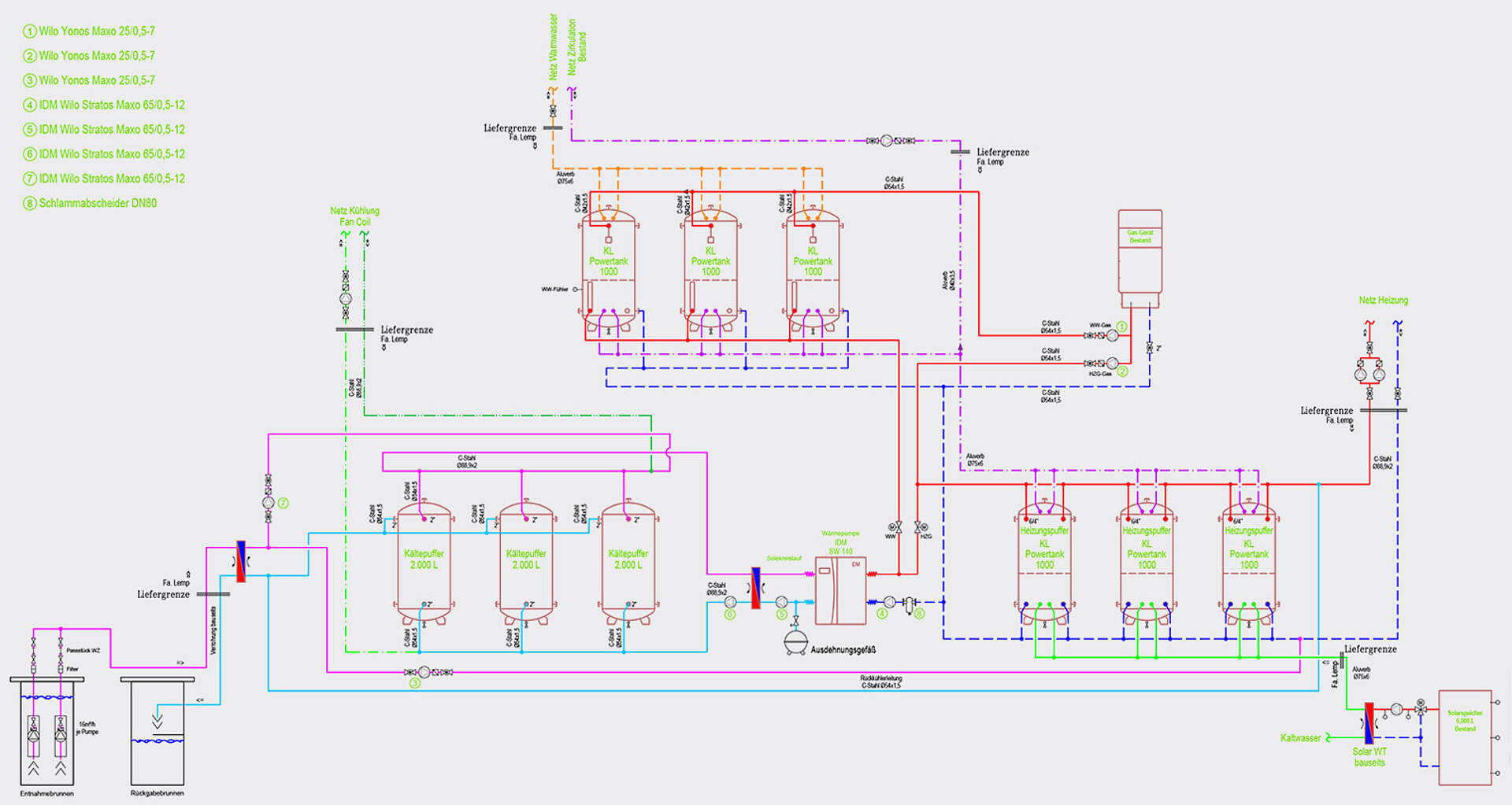 Der Pandemie wegen hat man sich kurzerhand entschlossen, den geplanten Umbau vorzuziehen und die unerfreuliche Situation positiv zu nutzen. Wichtigste Energiequelle ist nun Grundwasser, das sowohl als Wärmequelle für die Wasser-Wasser-Wärmepumpe dient, als auch für das “free cooling” Kühlkonzept. Grundlage