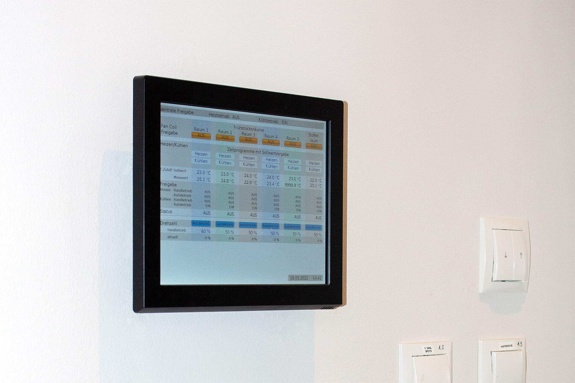 Realisiert wurde das Projekt durch zwei Unternehmen, je für einen Bereich verantwortlich, die unabhängig voneinander entschieden hatten, "TA Regler" einzusetzen. "Einerseits ein Glücksfall, dass sich beide einig waren", bestätigt Hotel-Geschäftsführer Christian Mayerhofer, "und im Nachhinein auch die richtige Entscheidung." Dadurch war und ist man flexibel genug, um die vielen Komponenten im Gebäude in die Regelung einzubinden - von der Wärmepumpe über die Fancoils bis hin zur Wärme- und Kälteverteilung - und vor allem steht auch der laufenden Optimierung nichts im Weg.