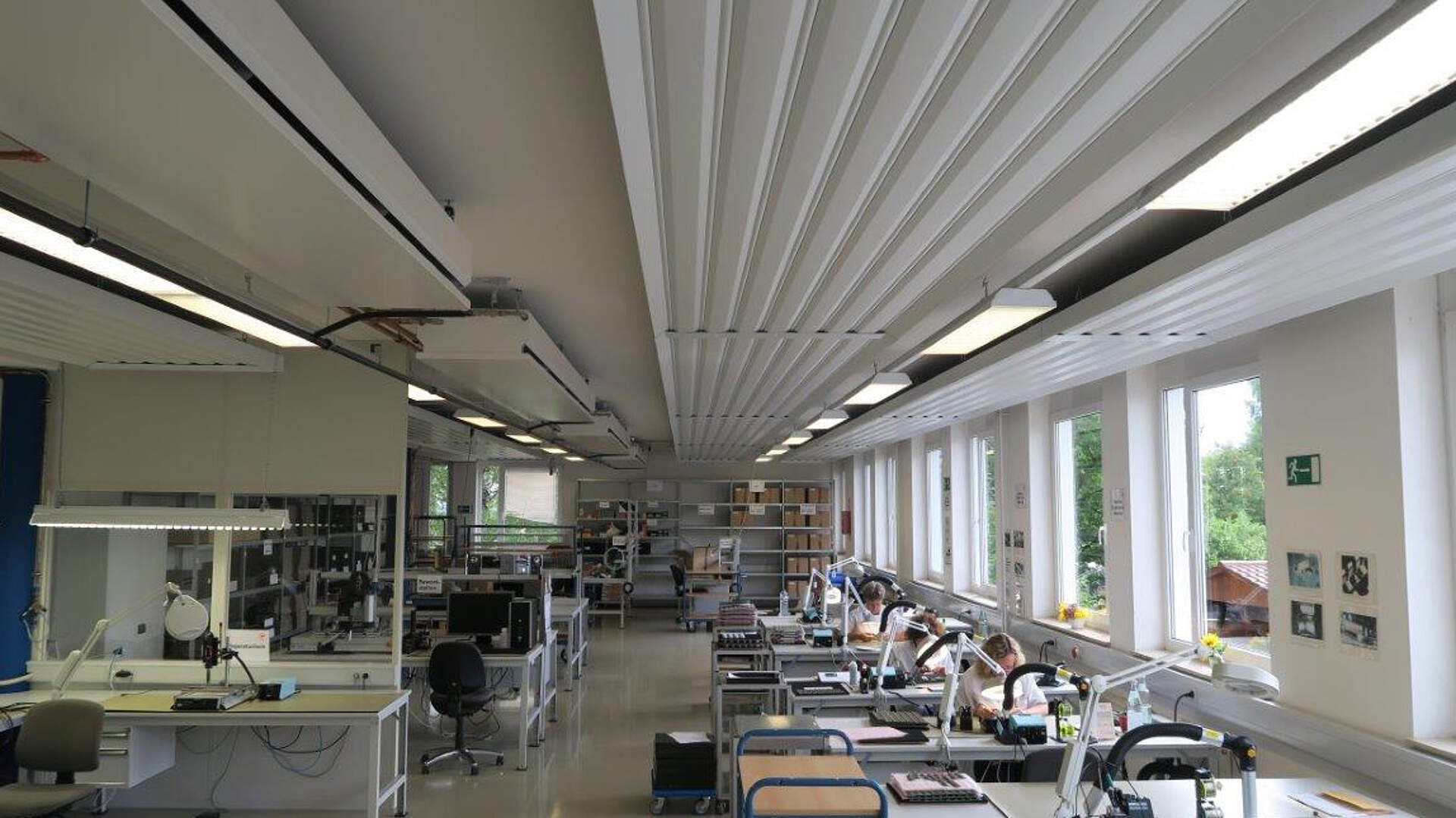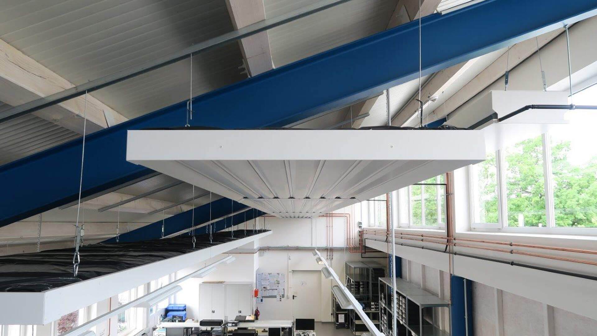 Im Produktionbereich der Firma Gebauer wurde eine 7-Zonen-Einzelraumregelungen realisiert, mit der in jeder Zone gekühlt oder geheizt werden kann.