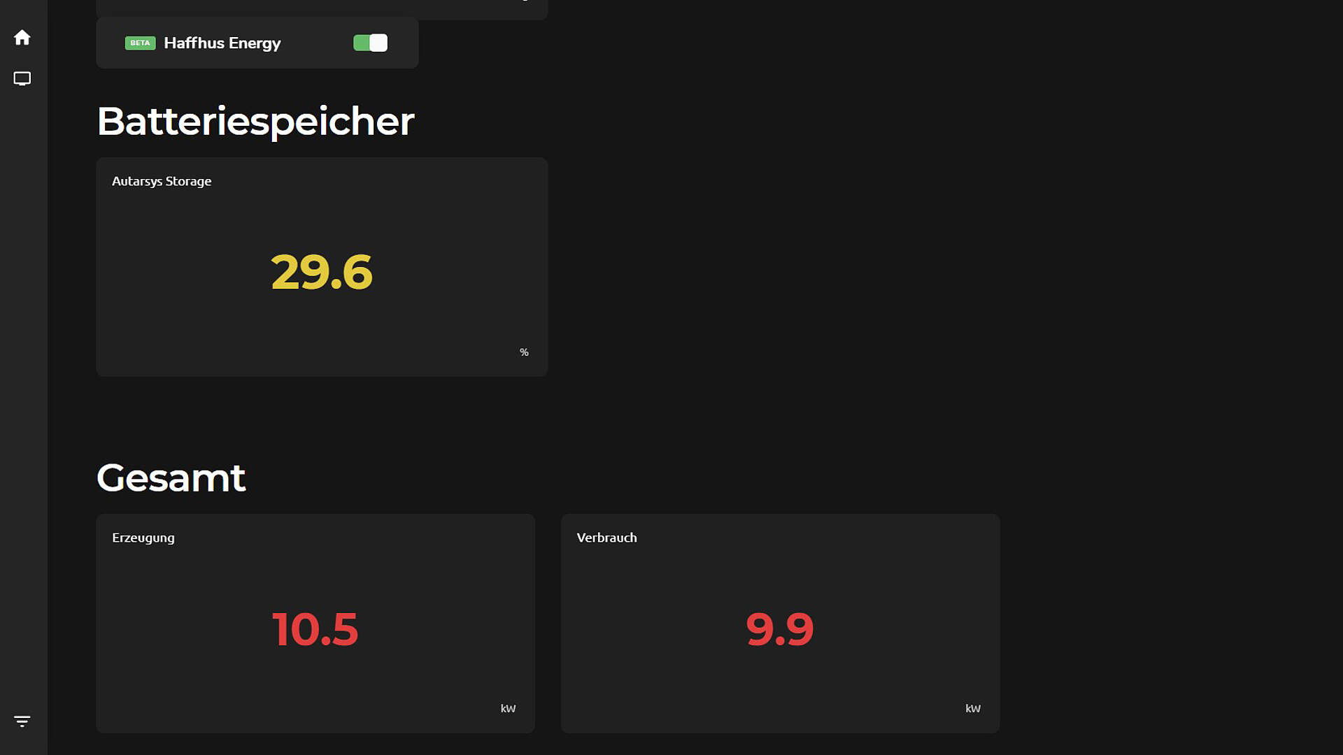 Eine Eigenschaft von großzügig dimensionierten PV-Anlagen und leistungsstarken KWK-Anlagen allgemein ist, dass sowohl auf der thermischen als auch auf der elektrischen Seite Überschüsse entstehen können, die im autarken Netz „irgendwo hin“ müssen wenn Sie gerade nicht von der Wärmepumpe, den Elektrofahrzeugen oder den anderen Verbrauchern im Betrieb benötigt werden. Auf der elektrischen Seite ist das natürlich der Batteriespeicher (ein zweiter 500 kWh Speicher ist geplant).