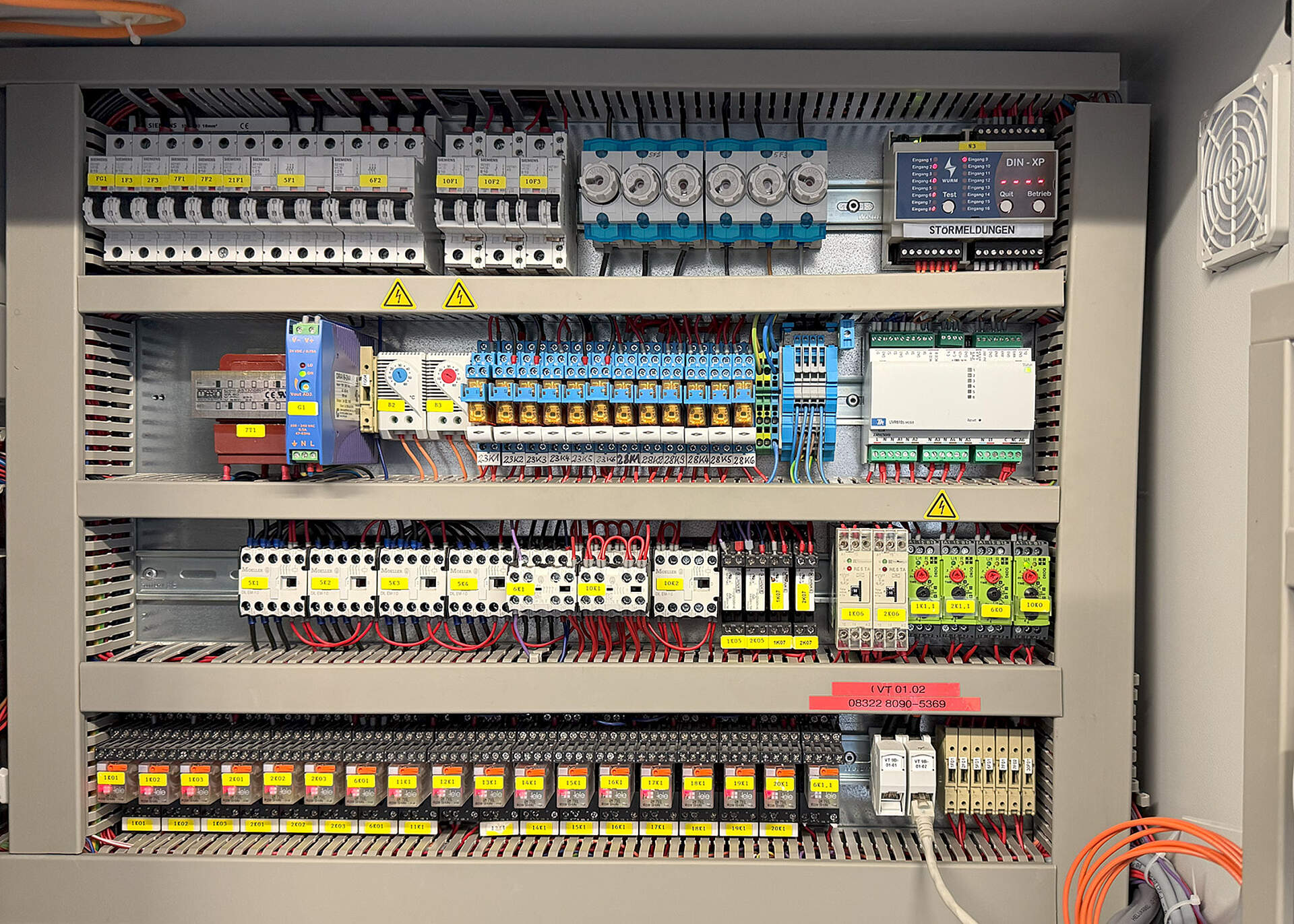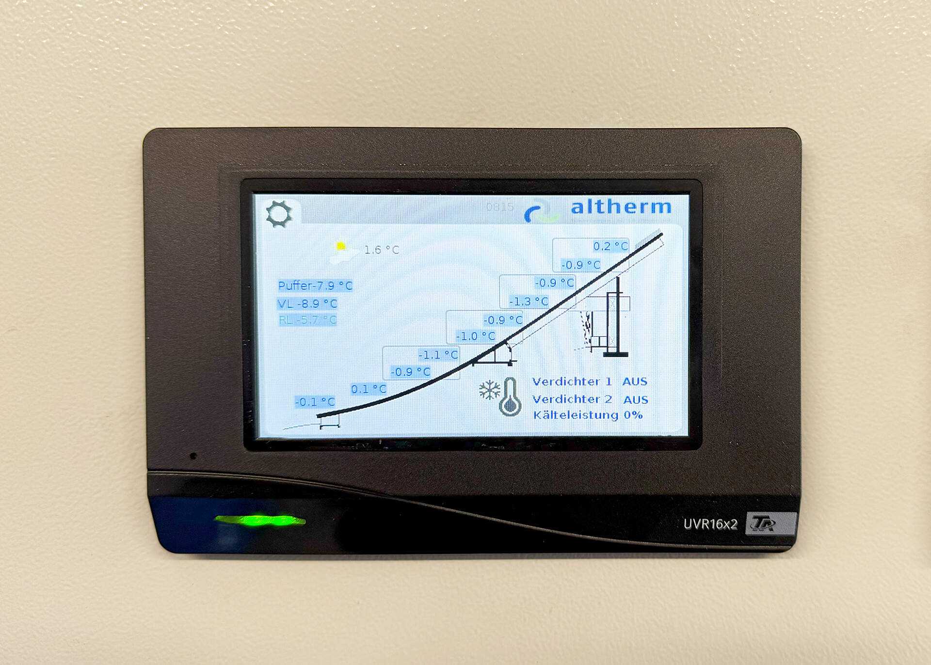 Die frühere Regelung, die aus acht separaten Einheiten bestand, wurde durch ein modernes System aus einer UVR610S mit Modbus Schnittstelle, einer UVR16x2S und einem CMI ersetzt. Diese Konfiguration bietet nicht nur eine effizientere Regelung, sondern ermöglicht auch ein komfortables Monitoring, Datenlogging und Fernwartung der Anlage.