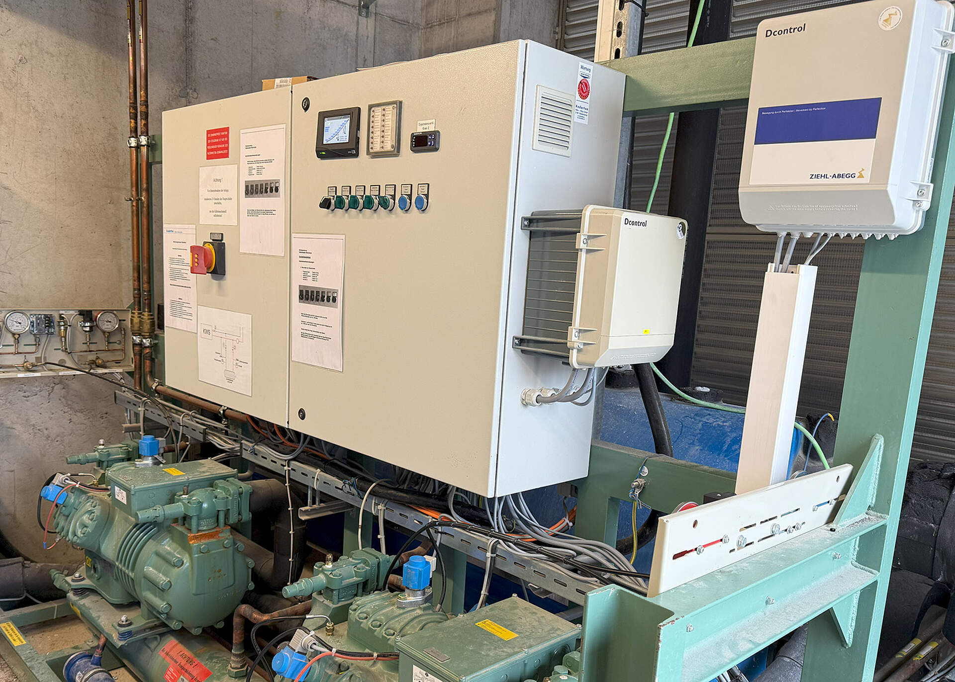 Eine entscheidende Verbesserung war die Umrüstung der Kältemaschine von vormals zwei auf nun sechs Leistungsstufen. Diese werden über die UVR610S angesteuert, wodurch eine präzise Anpassung der Leistung an den aktuellen Bedarf erreicht wurde. Zusätzlich findet eine Kommunikation über Modbus (RTU RS485) mit den elektronischen Expansionsventilen statt. Die Verflüssigungsdruckregelung der Anlage arbeitet mit einem 0-10V Signal, das gleitend an die Außentemperatur angepasst wird.