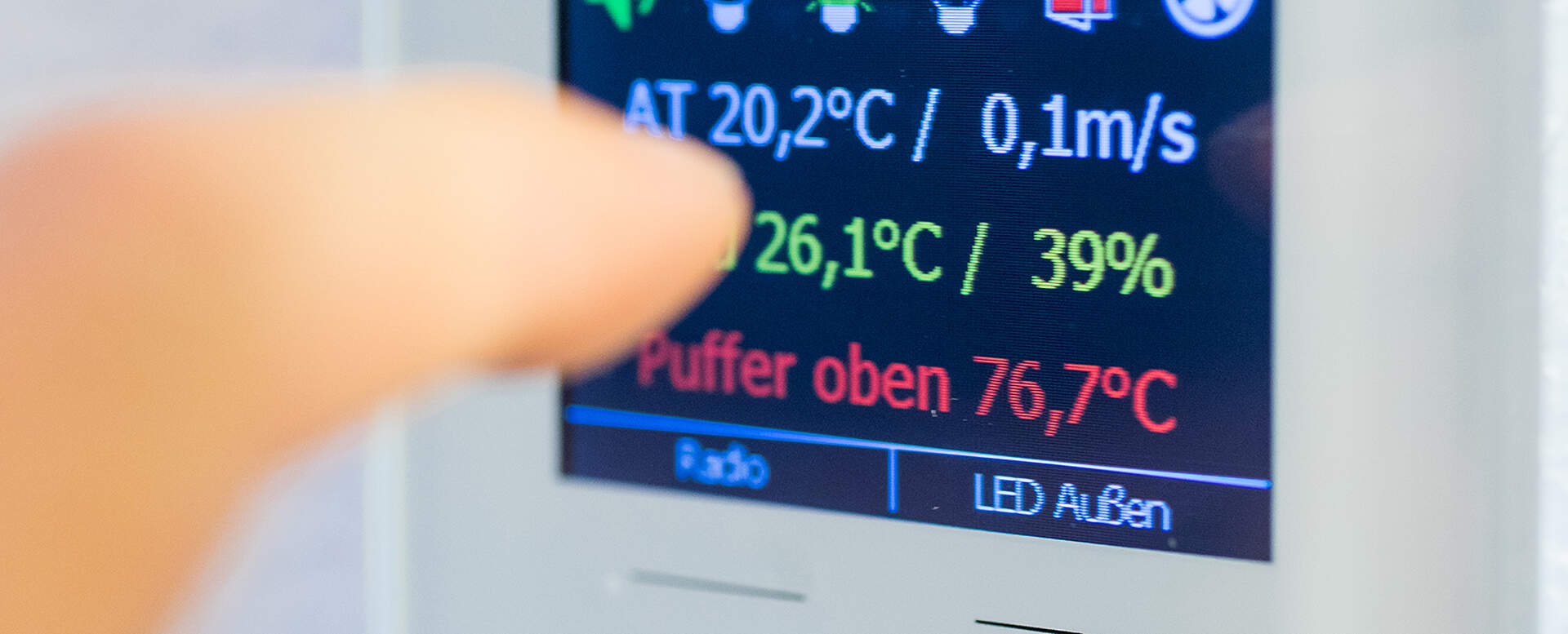 Zwei Universalregler UVR16x2 sowie ein Regel- und Schaltmodul RSM610 sorgen für die effiziente Regelung der komplexen Heizung. Eingebunden in das KNX Bus-System liefert und empfangen die Regelungen gewünschte und benötigte Werte zu/von KNX. Das Smart Home "kümmert" sich von der Lichtsteuerung über Jalousien und Rollläden (Wärmeschutz), intelligente Lüftungssteuerung bis hin zum Lastenmanagement und Sicherheitsaspekte um so gut wie alles. Dabei wurde viel Wert auf Automatisierung gelegt, um Komfort und Energieeinsparung bestmöglich zu optimieren.