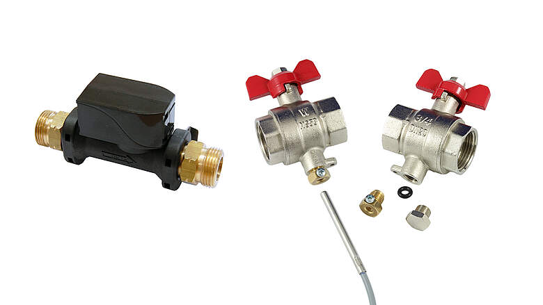 Dieses Set besteht aus einem FTS-DL, zwei Kugelhähnen und einem schnellen Temperaturfühler PT1000 zur Montage im Kugelhahn.