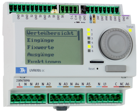 - 6 Relaisausgänge, davon einer wahlweise als potentialfreier Umschaltkontakt