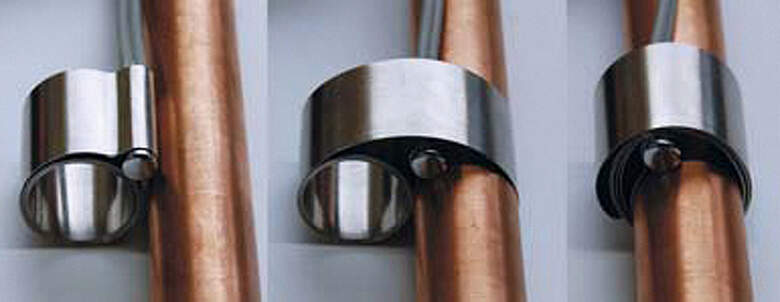 Einfache Montage der Sensoren als Anlegefühler, großer Einsatzbereich (RF 15-45 mm Rohrdurchmesser).